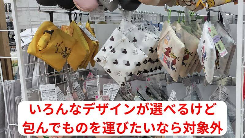 ダイソーのエコバッグはデザイン豊富だが包んでものを運ぶわけではない。